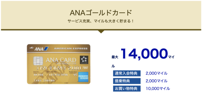 ANAゴールドカードですと、最大14,000マイルを獲得可能となっています!