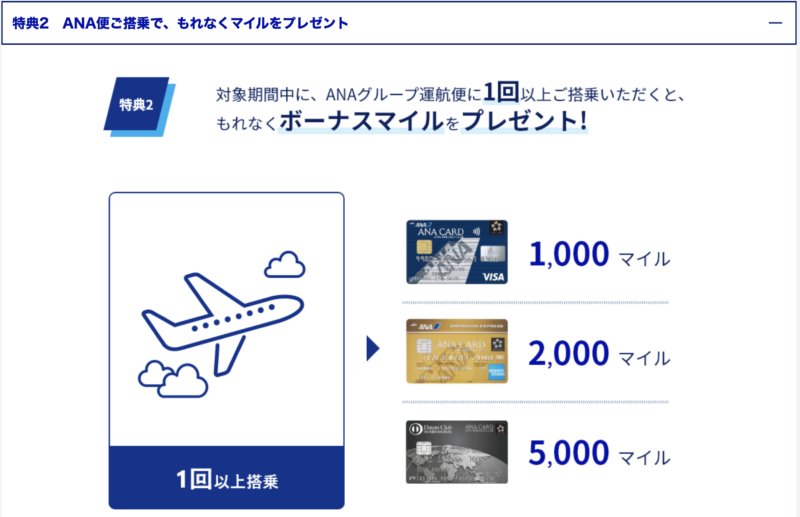 | カード利用金額に応じてプレゼント | ANA便搭乗でプレゼント | |