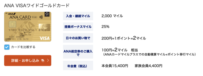 ANA VISA ワイドゴールドカードは200円=1ポイントです。