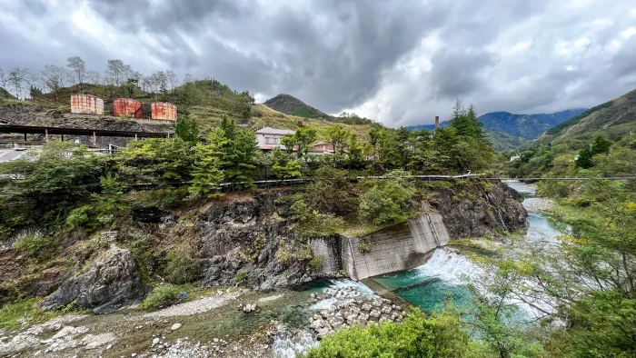 巨大な砂防ダム。どれほど採掘してきたのかがイメージができますね。