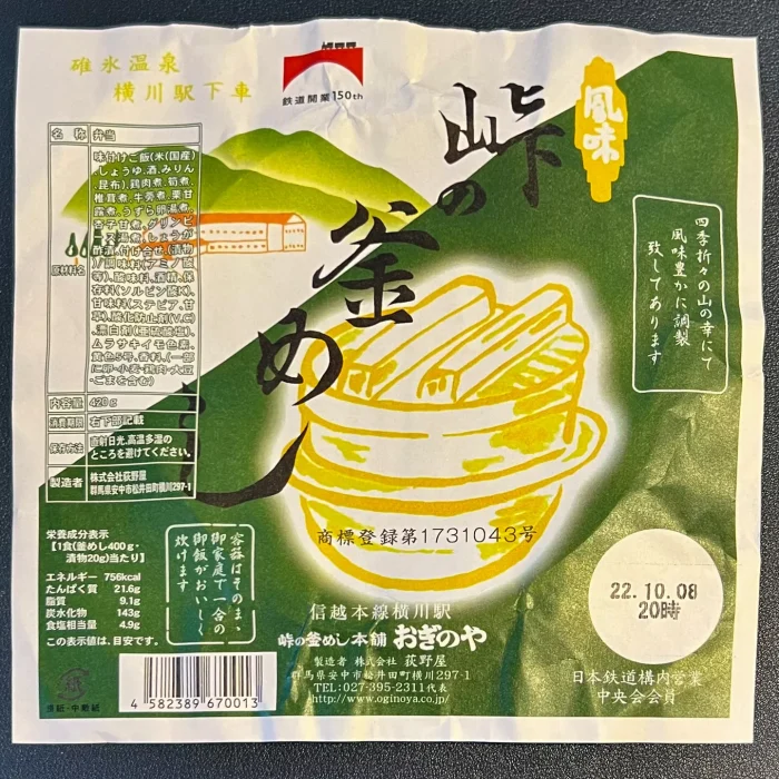 鉄道開業150周年を記念して、今から60年以上前の『峠の釜めし』販売当初のデザインを復刻した掛け紙で販売されています。